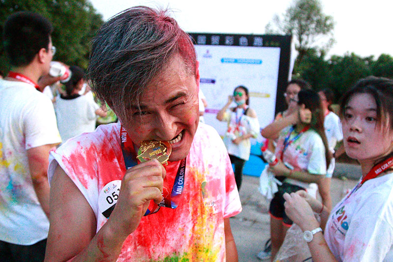 彩色跑,号稱“世界上(shàng)瘋狂、多(duō)彩、快樂”的5公裏跑活動The Color Run,是一項2011年發源于美國的運動。參加者身着白色T恤,跑步過程中經過不同的彩色站(zhàn),會(huì)被從頭到腳抛撒彩色粉末。