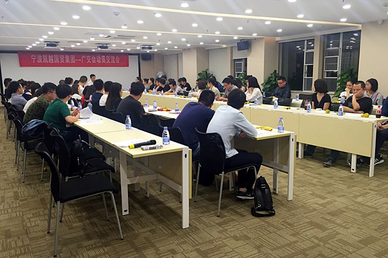 10月22日晚上(shàng)20點15分,集團廣交會(huì)二期動員交流會(huì)在廣州番禺舉行(xíng)。集團總裁湯一浒主持會(huì)議,集團總裁助理(lǐ)榮禦國貿總經理(lǐ)孫雪峰,總裁助理(lǐ)可(kě)賽進出口總經理(lǐ)樊運暢,樂馳國貿總經理(lǐ)馮林峰,凱玩事業部實習總經理(lǐ)樓冉虹等70名同事參加會(huì)議,部分同事因為(wèi)布展原因遲到或缺席。