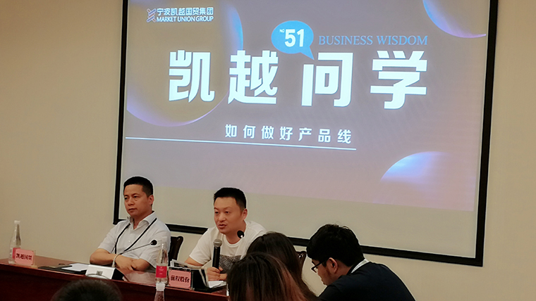 7月12日下午,凱越問學第51期在創新港天港禧悅酒店(diàn)成功舉行(xíng)。本次講座我們有(yǒu)幸邀請(qǐng)到了前程家(jiā)居董事長李晨以“如何做(zuò)好産品線”為(wèi)主題,分享了前程家(jiā)居在開(kāi)發管理(lǐ)産品線的發展曆程和(hé)工作(zuò)思維。集團總裁湯一浒,公司部分業務人(rén)員和(hé)李總帶領的前程家(jiā)居箐幹班在彼此的業務開(kāi)發和(hé)管理(lǐ)經驗上(shàng)進行(xíng)了深入的交流到快下午七點,大(dà)家(jiā)討(tǎo)論熱烈,會(huì)場(chǎng)內(nèi)外不時(shí)傳出陣陣掌聲。