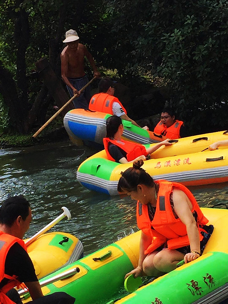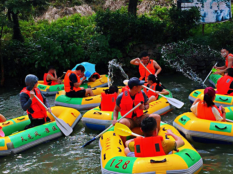 一個(gè)多(duō)小(xiǎo)時(shí)的漂流途中,喚起了大(dà)家(jiā)尋樂的童心,河(hé)道(dào)中彼此你(nǐ)追我趕,一旦相遇少(shǎo)不了要一場(chǎng)戲水(shuǐ)激戰。飛濺的河(hé)水(shuǐ)澆透了衣服,歡呼聲、被水(shuǐ)擊中的尖叫聲、開(kāi)懷的笑聲,回蕩在山(shān)谷,混響成一首快樂交響樂。待到漂流結束棄船(chuán)上(shàng)岸時(shí),一個(gè)個(gè)渾身透濕,涼意從腳漫到頭,相當爽快。