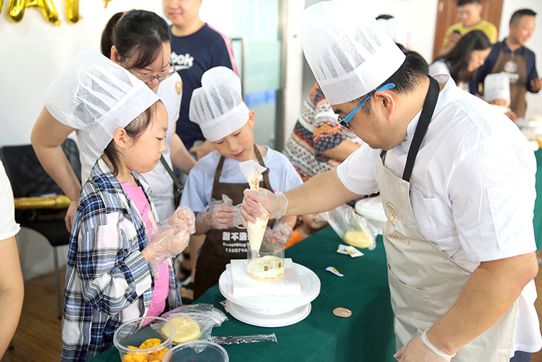 上(shàng)午9點,活動準時(shí)開(kāi)始,在工作(zuò)人(rén)員的講解和(hé)指導下,孩子們和(hé)家(jiā)長之間(jiān)相互配合、分工合作(zuò)。缤紛的奇思妙想,天馬行(xíng)空(kōng)的創造欲,連同那(nà)對甜品的喜愛(ài),都在蛋糕DIY中得(de)到大(dà)大(dà)的滿足。