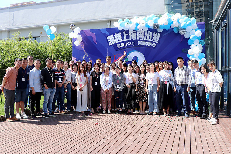 9月18日,凱越(1931)有(yǒu)限公司在上(shàng)海印坊928創意園慶祝成立兩周年。集團領導湯一浒、莊惠強、上(shàng)海公司全體(tǐ)同事和(hé)部分甯波同事約50人(rén)出席了本活動。