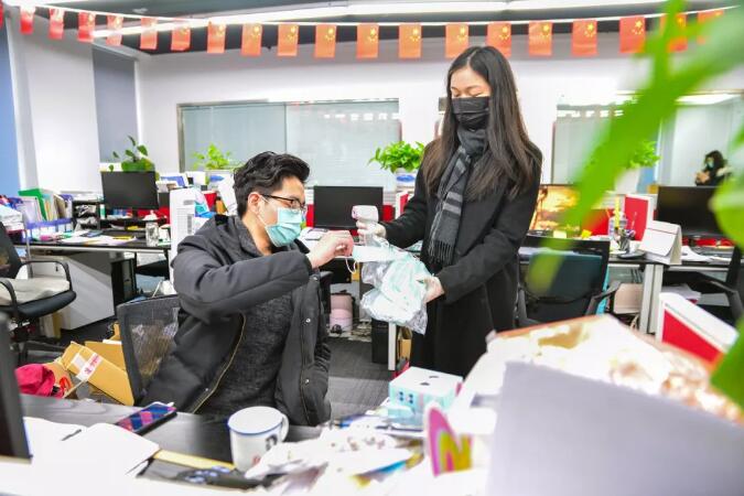 公司安排每天發放口罩,大(dà)家(jiā)可(kě)以免費領取;