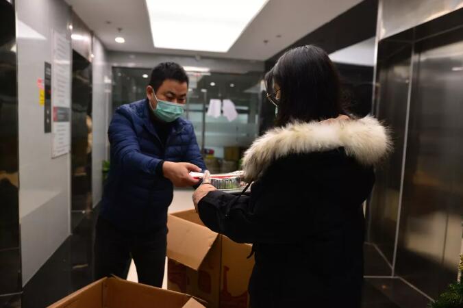采取盒飯式的供餐方式,工作(zuò)人(rén)員統一各樓層分發;