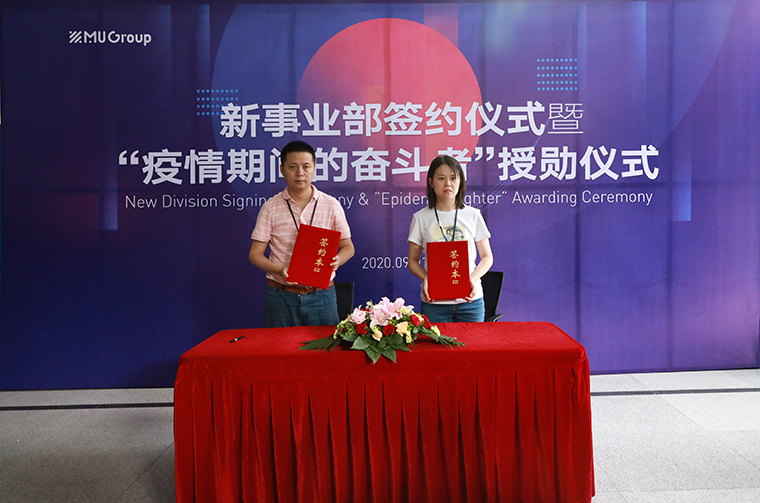 首先進行(xíng)的是“疫情期間(jiān)的奮鬥者”授勳儀式,6位同事獲頒銀質勳章,10位同事獲頒銅質勳章,這是集團第二次為(wèi)疫情期間(jiān)業務開(kāi)拓有(yǒu)特殊貢獻的同事授予勳章。随後,進行(xíng)的是新事業部簽約儀式,湯總分别與凱美、凱盟、榮韓三個(gè)事業部負責人(rén)簽約,羅總分别與陸戶、陸容兩個(gè)事業部負責人(rén)簽約。各位領導均作(zuò)了簡單發言,寄語新事業部開(kāi)拓創新,勇攀高(gāo)峰。