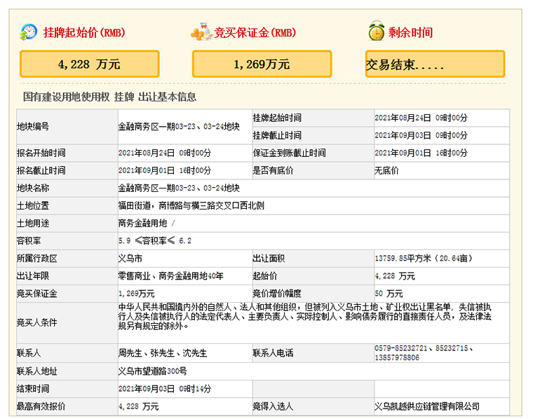 2021年9月3日,集團義烏運營中心成功摘得(de)位于義烏金融商務區(qū)(自貿區(qū))03-23、03-24地塊。該地塊占地面積20.64畝,地上(shàng)建築85000平方米,地下三層建築33000平方米。項目距離義烏小(xiǎo)商品城步行(xíng)10分鍾,北臨濱江一品小(xiǎo)區(qū),東臨商博路,南面義烏江,辦公商業氛圍濃郁。公司計(jì)劃在2024年初于該地塊建成集外貿和(hé)電(diàn)商辦公、員工高(gāo)級酒店(diàn)式公寓、配套商業為(wèi)一體(tǐ)的綜合辦公和(hé)商業樓宇兩棟。