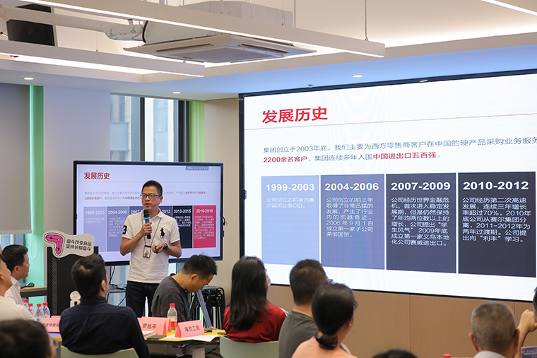 随後,凱越集團總裁助理(lǐ)莊惠強向大(dà)家(jiā)詳細介紹了凱越集團具體(tǐ)情況,其中重點介紹了凱越集團市場(chǎng)與采購覆蓋、主要客戶、供應鏈管理(lǐ)服務、産品線、産品開(kāi)發與定制(zhì)、質量管理(lǐ)、物流倉庫等。