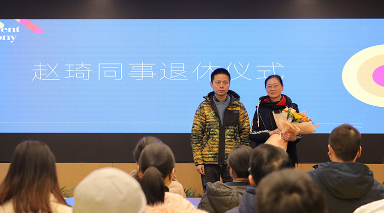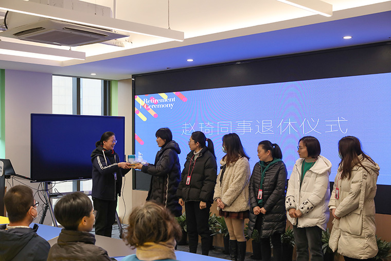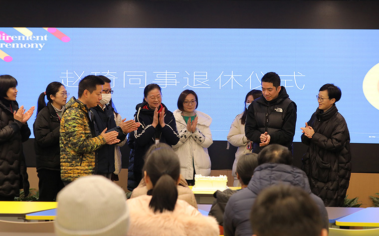在虎年春節即将到來(lái)之際,1月30日,公司舉行(xíng)趙琦同事退休歡送儀式。集團領導湯一浒、羅旭平、莊惠強、陳吉萍,共事15年以上(shàng)的事業部領導、同事,以及甯波樣品間(jiān)、産品開(kāi)發部全體(tǐ)同事參加本次活動。