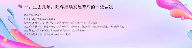 第一部分,過去幾年,陸尊持續發展背後的一些(xiē)做(zuò)法;