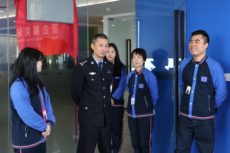 3月27日上(shàng)午,警企服務站(zhàn)揭牌儀式在義烏金融商務工作(zuò)區(qū)舉行(xíng),市公安局黨委委員朱智琴一行(xíng)領導莅臨,集團副總裁徐欣參加。