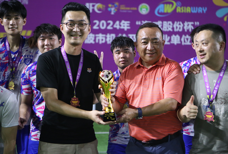 集團足球隊成立于2004年,足球社團于2012年成立,隊員20餘名,連續多(duō)年參加甯波足協主辦的聯賽,先後榮獲高(gāo)新杯季軍、冠軍,以及快樂杯季軍、亞軍。百尺竿頭,更進一步,本次也是足球隊再度捧回冠軍獎杯。