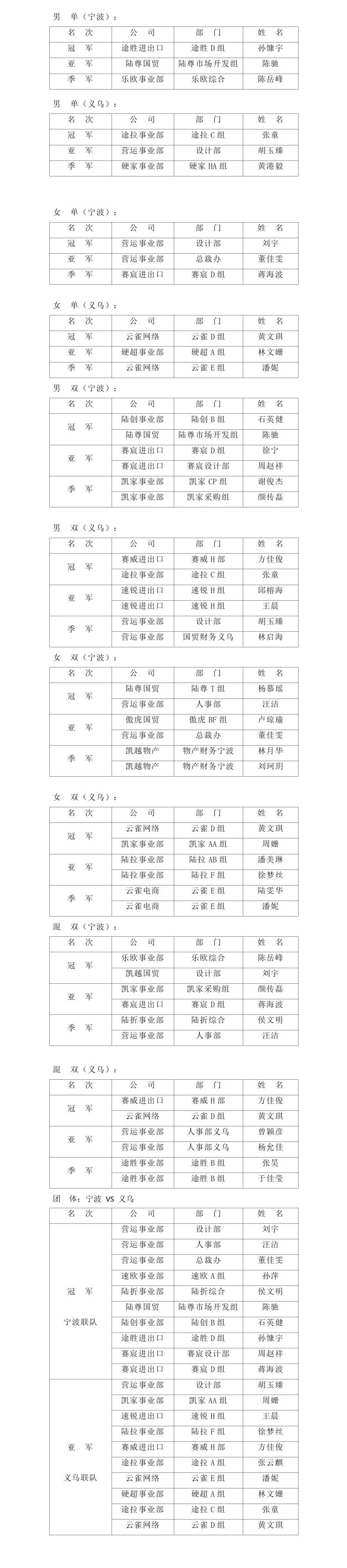集團2024年度羽毛球賽成績公布