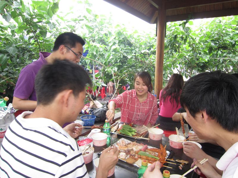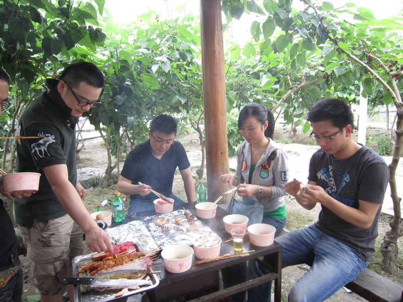 進入莊園內(nèi),同事們首先遊覽了植物世界,随後便一頭紮入桑樹(shù)林中與飽滿紫紅的桑葚們開(kāi)始了親密接觸,最後,在天宮莊園月亮灣進行(xíng)了燒烤。